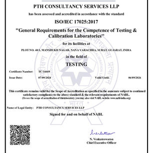 ISO/IEC 17025 Accredited Testing Laboratory by NABL Vide Certificate Number TC-14449